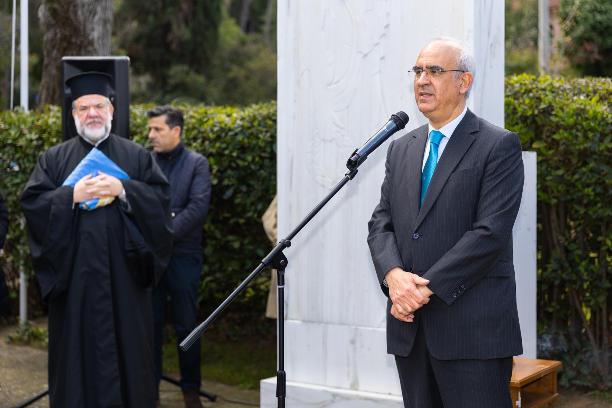 Επιμνημόσυνη δέηση και κατάθεση στεφάνων από σχολεία και συλλόγους πραγματοποιήθηκε το πρωί στο Μνημείο των Πεσόντων, στην πλατεία Κέννεντυ, Εκάλης.