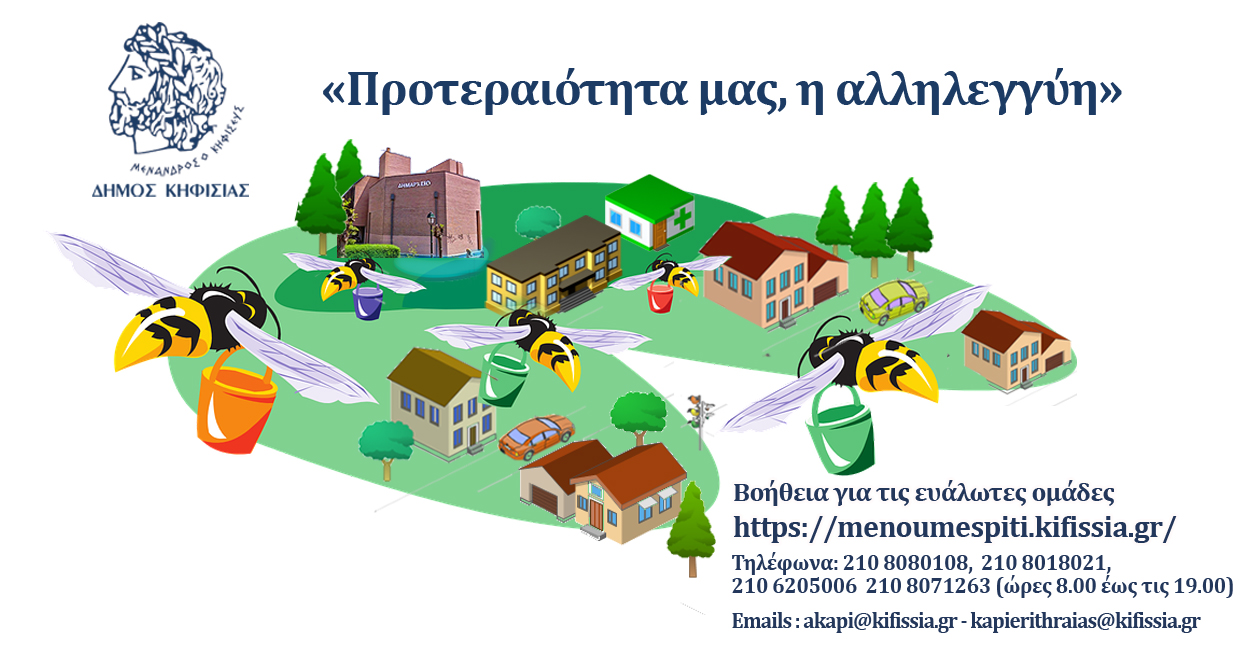 Λόγω των έκτακτων συνθηκών που έχουν διαμορφωθεί αναφορικά με τον κορωνοϊό COVID19 και με γνώμονα την τήρηση των οδηγιών του ΕΟΔΥ σχετικά με τα προληπτικά ειδικά μέτρα για τον περιορισμό των άσκοπων μετακινήσεων και κατ' επέκταση της πιθανότητας εξάπλωσης της επιδημίας, ο Δήμος Κηφισιάς ενημερώνει: