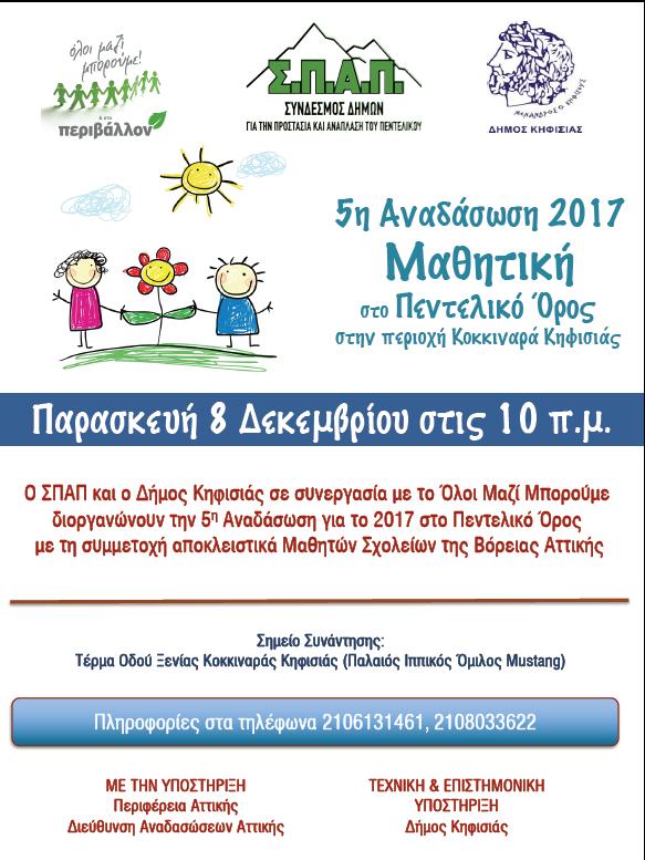 Δράση Μαθητικής Αναδάσωσης από τον Σ.Π.Α.Π., το Δήμο Κηφισιάς και το «Όλοι Μαζί Μπορούμε και στο Περιβάλλον» στο Πεντελικό.