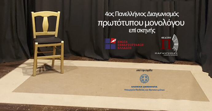 Η Ένωση Σεναριογράφων Ελλάδος, ως γνωστόν, καθιέρωσε τον Πανελλήνιο Διαγωνισμό Συγγραφής και Ερμηνείας Πρωτότυπων Μονολόγων επί Σκηνής ως ετήσια πανελλήνια πολιτιστική εκδήλωση εξ ου και προκηρύσσει τον τέταρτο (4ο) προσκαλώντας τους θιασώτες του ιδιαίτερου αυτού θεατρικού είδους, από όλη την Επικράτεια αλλά και το εξωτερικό, να προσέλθουν και να παρουσιάσουν το έργο τους στον 4ο Πανελλήνιο Διαγωνισμό Συγγραφής και Ερμηνείας Πρωτότυπων Μονολόγων επί Σκηνής.