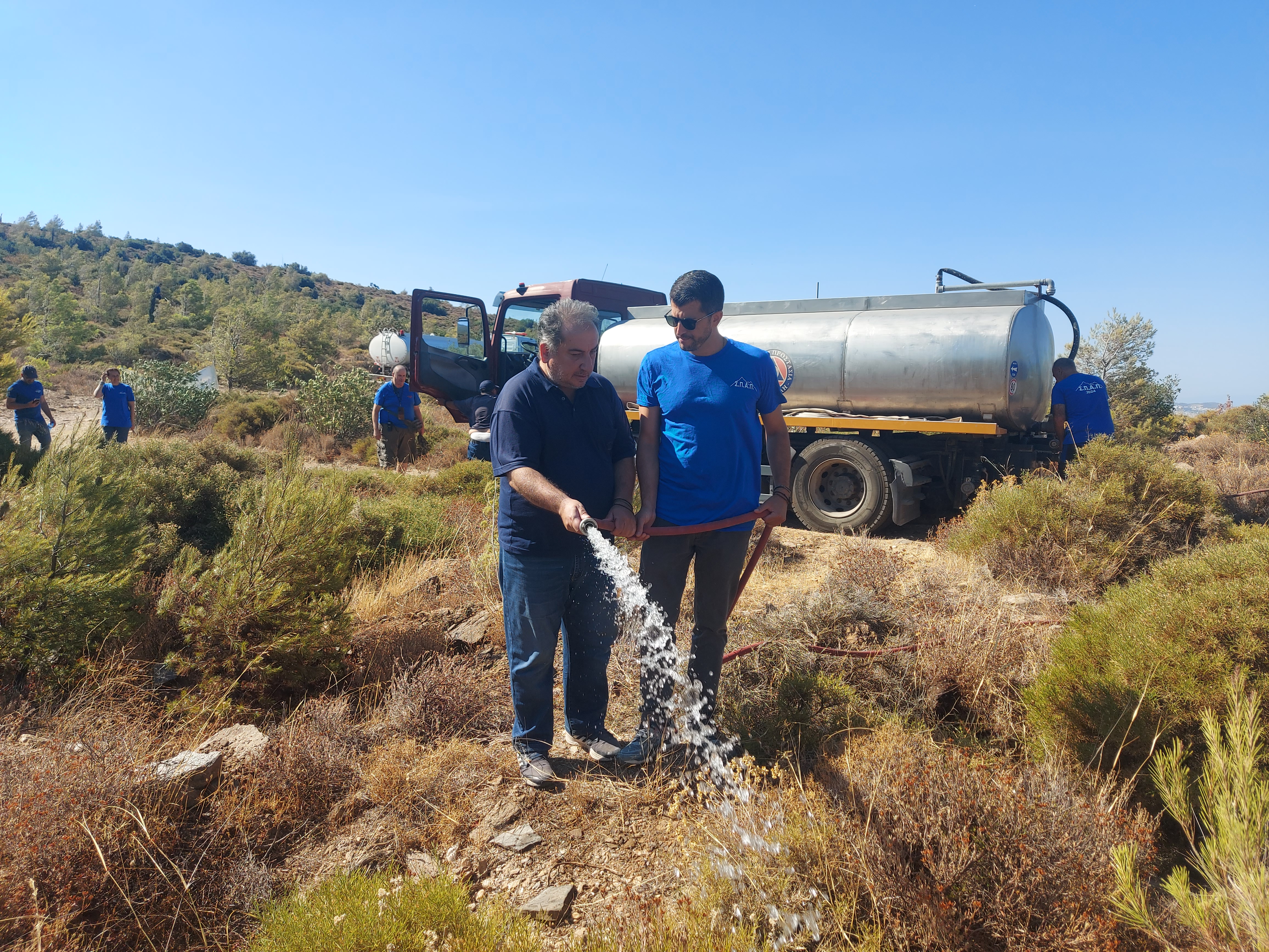 Με τη συμμετοχή εργαζομένων, εθελοντών και αιρετών πραγματοποιήθηκε σήμερα Παρασκευή 26 Ιουλίου Εθελοντικό Πότισμα, από το Σύνδεσμο Δήμων για την Προστασία και Ανάπλαση του Πεντελικού (ΣΠΑΠ) σε συνεργασία με το «Όλοι Μαζί Μπορούμε και στο Περιβάλλον» στην περιοχή που αναδασώθηκε τη φυτευτική περίοδο 2023 – 2024, βορειοανατολικά του Νοσοκομείου Παίδων Πεντέλης.