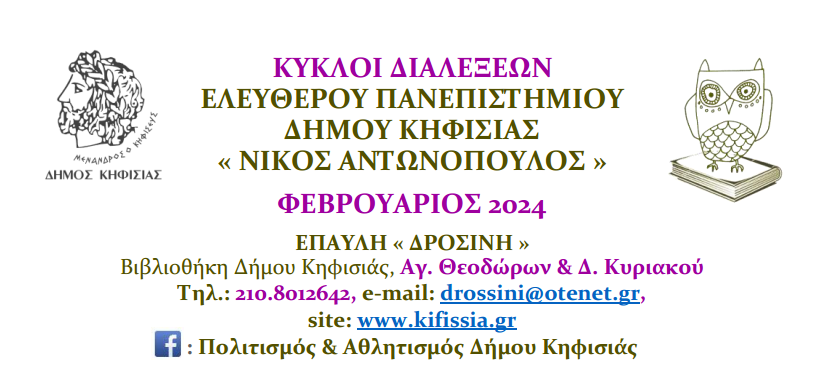Τρίτη 19η Δεκεμβρίου 2023, ώρα 18.00 στην Αίθουσα «Σταύρος Βόλκος» του Δημαρχείου Κηφισιάς (Διονύσου 24 και Μυρσίνης, Κηφισιά)