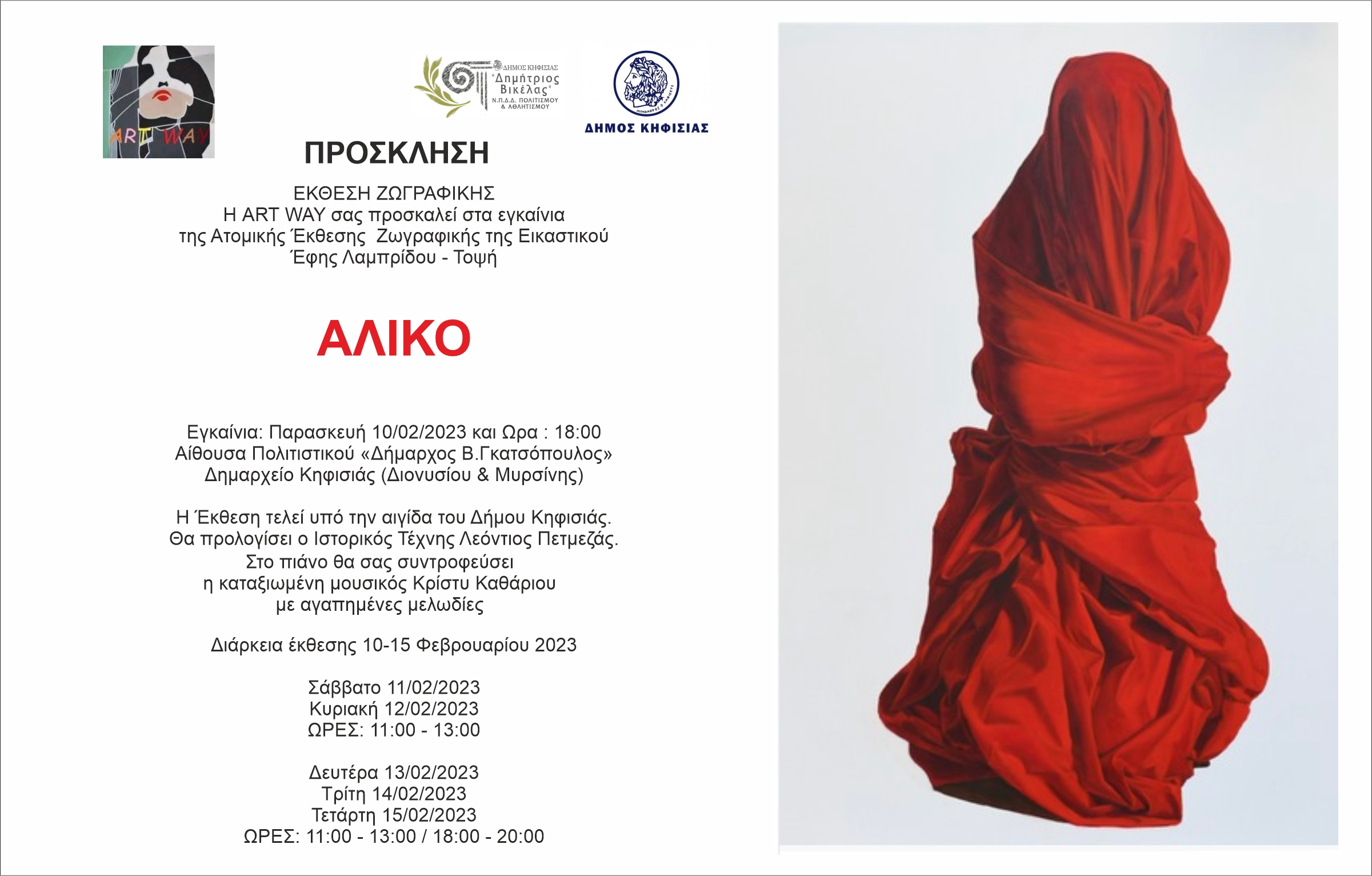 Το Πράσινο Ταμείο φιλοξενεί την έκθεση της εικαστικού Όλγας Σουλαχάκη με τίτλο « MΑΤΙ 23718 » στην αίθουσα Εκδηλώσεων, της Βίλας Καζούλη, στην Κηφισιά, Λεωφ. Κηφισίας 241, από 20 Φεβρουαρίου μέχρι 24 Φεβρουαρίου 2023.
