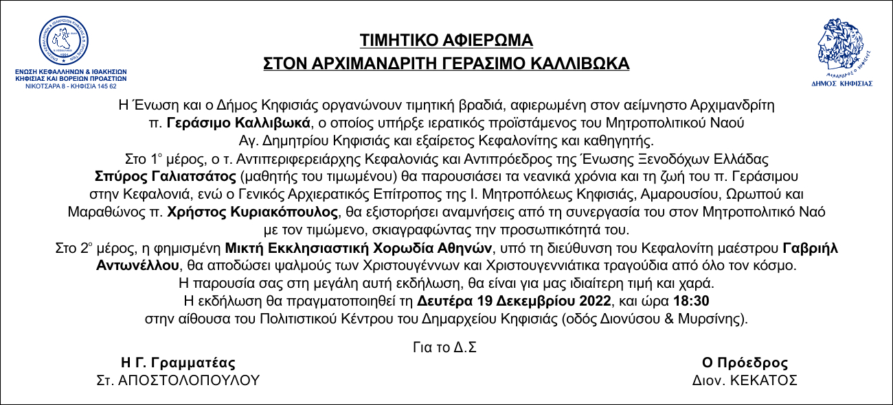 Την Κυριακή 11 Δεκεμβρίου πραγματοποιήθηκε στο Μέγαρο Παλλάς Αθηνά του Ιδρύματος Ιωάννη Σ. Λάτση στο Κεφαλάρι, η 14η συναυλία του συλλόγου «Φίλων της Ορχήστρας Ποικίλης Μουσικής», αφιερωμένη στη μνήμη της καθηγήτριας μουσικής και τα λυκειάρχη Κίρκης Αρνελλου, που χορηγεί τα τελευταία χρόνια ο γιος της Δημήτρης Παρασκευάς.