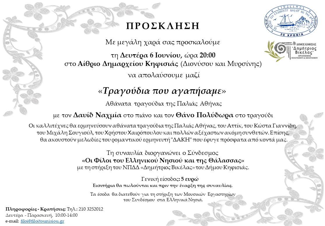 Το Φεστιβάλ Κηφισιάς που οργανώνει το ΝΠΔΔ «Δ. Βικέλας» του Δήμου Κηφισιάς έρχεται 18 Ιουνίου με 25 Ιουλίου 2022 για να συντροφεύσει τα καλοκαιρινά μας βράδια μας με όμορφες στιγμές ψυχαγωγίας και Πολιτισμού.
