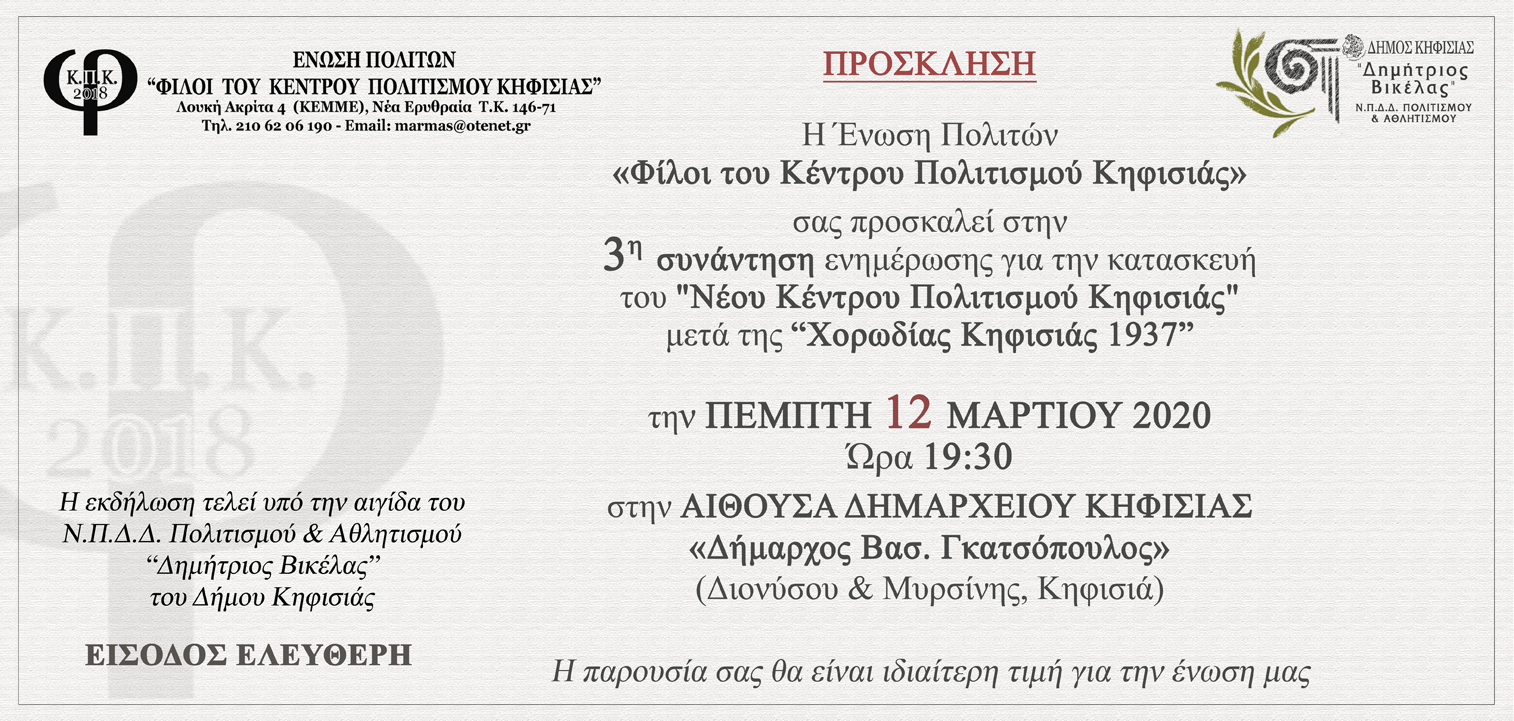 Η Πρόεδρος Λίλα Παπαδημητρίου & το Δ.Σ. του Ν.Π.Δ.Δ. Πολιτισμού & Αθλητισμού «Δημήτριος Βικέλας» του Δήμου Κηφισιάς