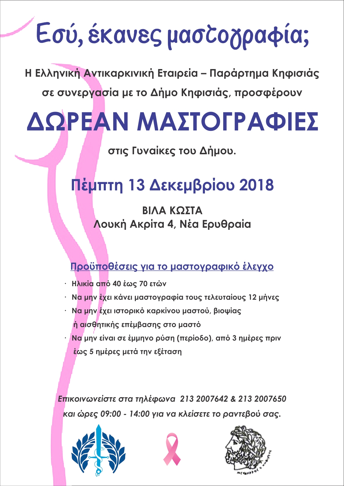 O Δήμος Κηφισιάς στα πλαίσια εφαρμογής προγραμμάτων προληπτικής ιατρικής σε συνεργασία με το Εθνικό Διαδημοτικό Δίκτυο Υγιών Πόλεων-Προαγωγής Υγείας, διοργάνωσε για ακόμα μια φορά δωρεάν μέτρηση οστικής πυκνότητας, με σκοπό την πρόληψη και την έγκαιρη διάγνωση της οστεοπόρωσης και της οστεοπονίας.