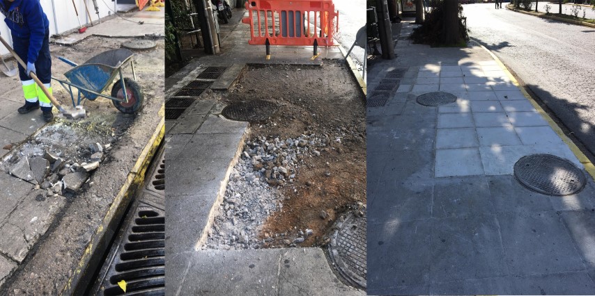 Συνεχίζονται οι αποκαταστάσεις επικίνδυνων σημείων, σε πεζοδρόμια κεντρικών αρτηριών της πόλης μας, και συγκεκριμένα στην Λ. ΚΗΦΙΣΙΑΣ και στην οδό ΧΑΡΙΛΑΟΥ ΤΡΙΚΟΥΠΗ , Δ.Ε. Κηφισιάς , από τον Δήμο Κηφισιάς.