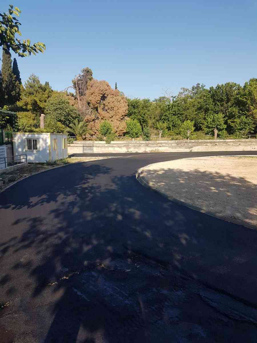 Σήμερα ολοκληρώνεται η ασφαλτόστρωση, Ήδη έχουν γίνει εργασίες κατασκευής συστήματος απορροής υδάτων και υποδομής πυλώνων φωτισμού καθώς και η δημιουργία κρασπέδων περιμετρικά του στίβου.