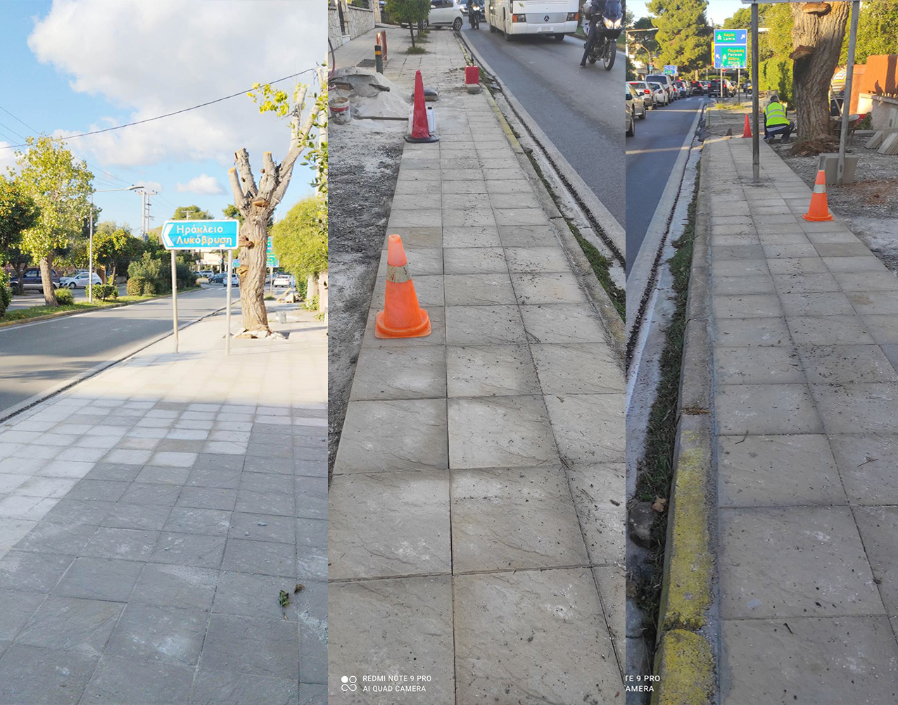 Τα τελευταία χρόνια έχουν κατασκευαστεί 9.645τμ πεζοδρομίων σε κεντρικές αρτηρίες του Δήμου μας, ενώ σε εξέλιξη είναι δύο εργολαβίες ύψους 825.624,69 ευρώ.