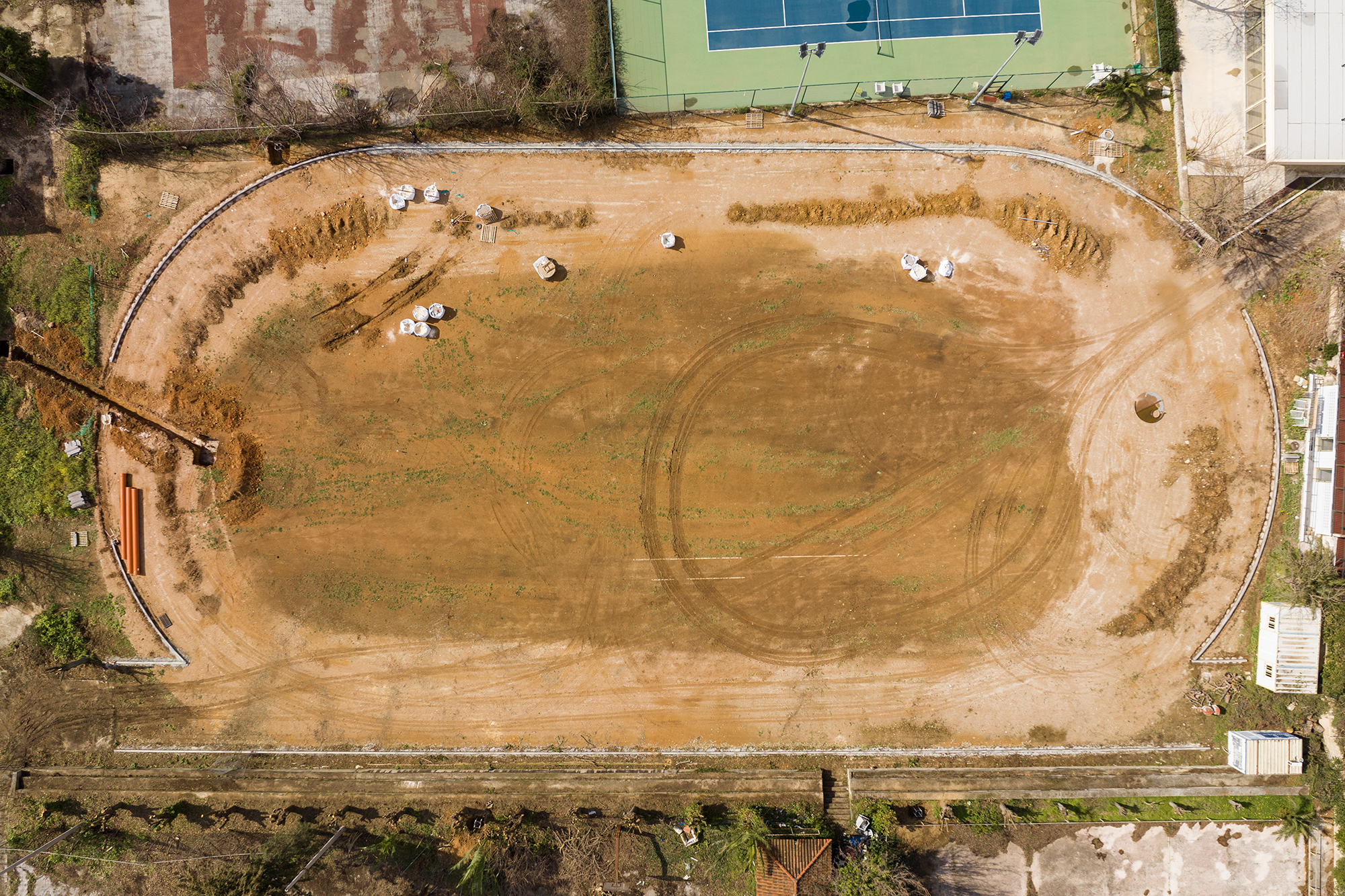 Συνεχίζονται οι εργασίες ανακατασκευής του παλαιού στίβου στις αθλητικές εγκαταστάσεις της ΧΑΝ που βρίσκονται κάτω από τον τερματικό σταθμό του ΗΣΑΠ, σε κοντινή απόσταση από το Δημοτικό Στάδιο «Ι. Ζηρίνης». ΄