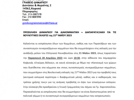Kαλούνται οι εκπρόσωποι όλων των Κομμάτων, καθώς και των Παρατάξεω
