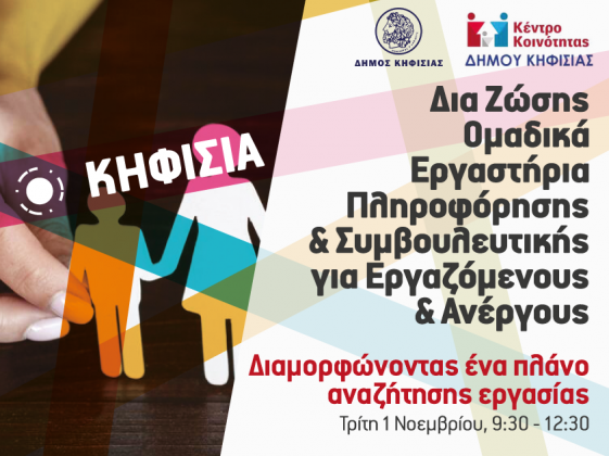 Το Κέντρο Κοινότητας του Δήμου Κηφισιάς διοργανώνει σε συνεργασία με το Ινστιτούτο Εργασίας της ΓΣΕΕ, δια ζώσης ομαδικό εργαστήριο πληροφόρησης και