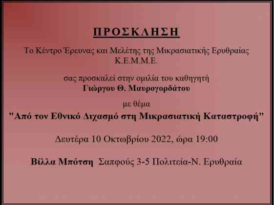 Τη Δευτέρα 10 Οκτωβρίου και ώρα 19:00 το ΚΕΜΜΕ Δήμου Κηφισιάς οργανώνει ομιλία του Καθηγητή Γιώργου Θ.