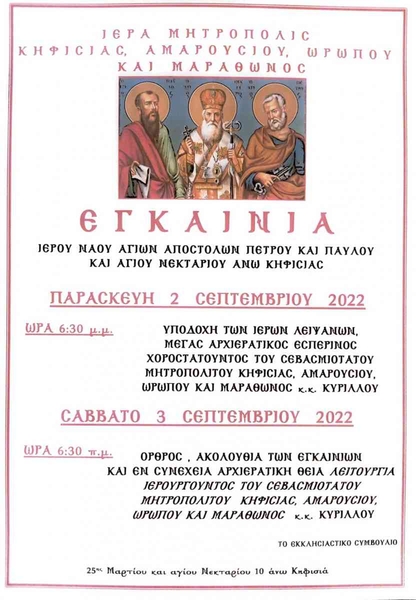 Πανηγυρικός Αρχιερατικός εσπερινός του Αγίου Φανουρίου χοροστατούντος του Σεβασμιότατου Μητροπολίτου Κηφισίας, Αμαρουσίου, Ωρωπού και Μαραθώνος κ.