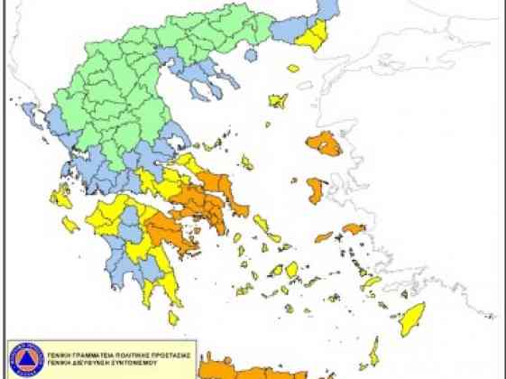 Σύμφωνα με το Χάρτη Πρόβλεψης Κινδύνου Πυρκαγιάς που εκδίδει η Γενική Γραμματεία Πολιτικής Προστασίας του Υπουργεί