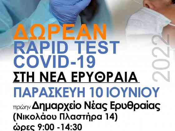 Ο Δήμος Κηφισιάς σε συνεργασία με την Περιφέρεια Αττικής και τον Ι.Σ.Α. προχωρά στη διενέργεια δωρεάν rapid tests.