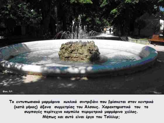 Στο κέντρο του Άλσους Κηφισιάς «Δήμαρχος Δημήτρης Ζωμόπουλος» βρίσκεται ένα εντυπωσιακό μαρμάρινο κυκλικό σιντριβάνι.
