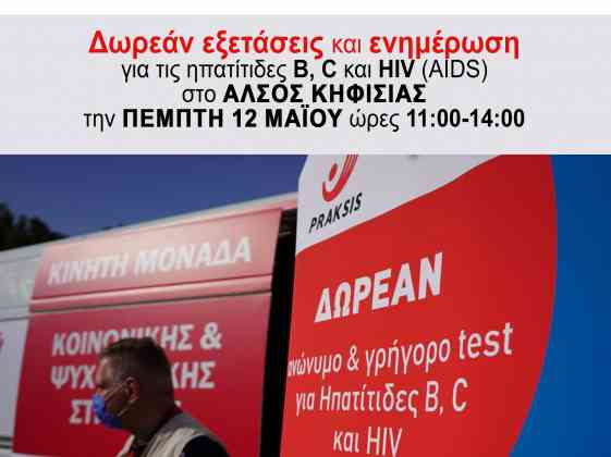 Το ΚΕΠ Υγείας (Κέντρο Πρόληψης Υγείας) Δήμου Κηφισιάς σε συνεργασία με την κινητή μονάδα Praksis διοργανώνει δράση: δωρεάν εξετάσεις και ενημέρωση