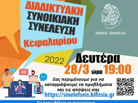 Συνεχίζονται οι Διαδικτυακές Συνοικιακές Συνελεύσεις στον Δήμο Κηφισιάς φυσική συνέχεια των πάνω από 150 συνελεύσεων στις γειτονιές του Δήμου μας.