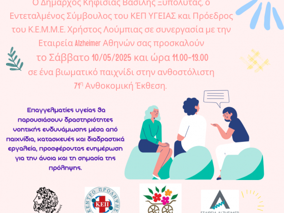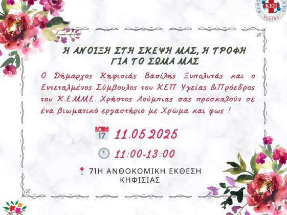 71η Ανθοκομική Έκθεση Κηφισιάς: Βιωματικές Δράσεις Νοητικής Ενδυνάμωσης στις 10/5 στο Άλσος