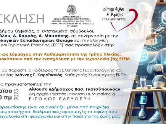 Εκδήλωση των ΚΑΠΗ στο Δημαρχείο, 6/5 με θέμα την Τεχνολογία ως σύμμαχο στην καθημερινότητα της Τρίτης Ηλικίας