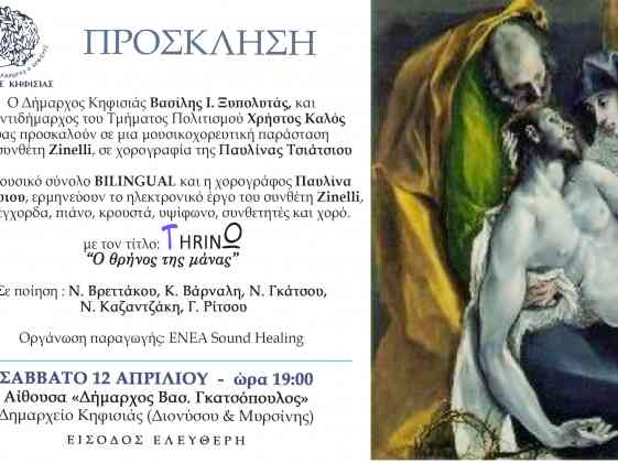 Η μουσικοχορευτική παράσταση THRINΩ "Ο θρήνος της μάνας", 12/4 στο Δημαρχείο Κηφισιάς