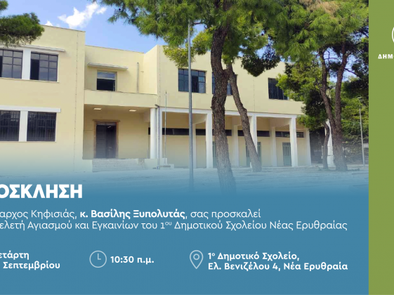 O Δήμαρχος Κηφισιάς κ. Βασίλης Ξυπολυτάς, σας προσκαλεί στην τελετή Αγ