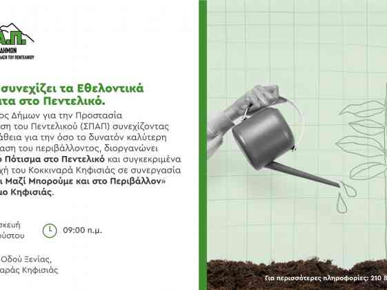 Ο Δήμαρχος Κηφισιάς και Πρόεδρος του Σ.Π.Α.Π. Βασίλης Ξυπολυτάς, σας προσκαλεί στο Εθελοντικό Πότισμ