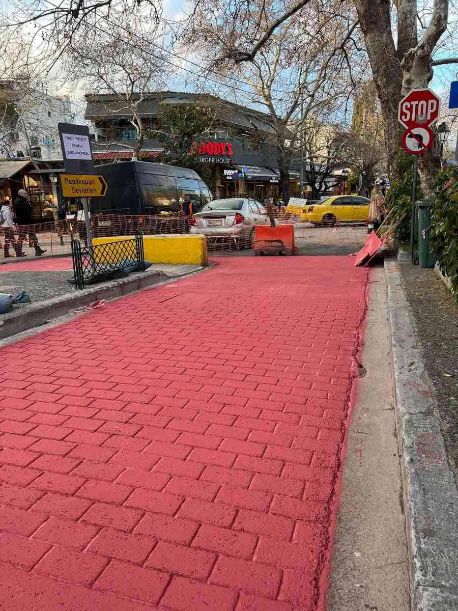 Είναι η τρίτη παρέμβαση που πραγματοποιείται σε διαφορετικά τμήματα του κέντρου για την αποκατάσταση του οδοστρώματος, με την πρωτοποριακή μέθοδο της έγχρωμης σταμπωτής ασφάλτου.