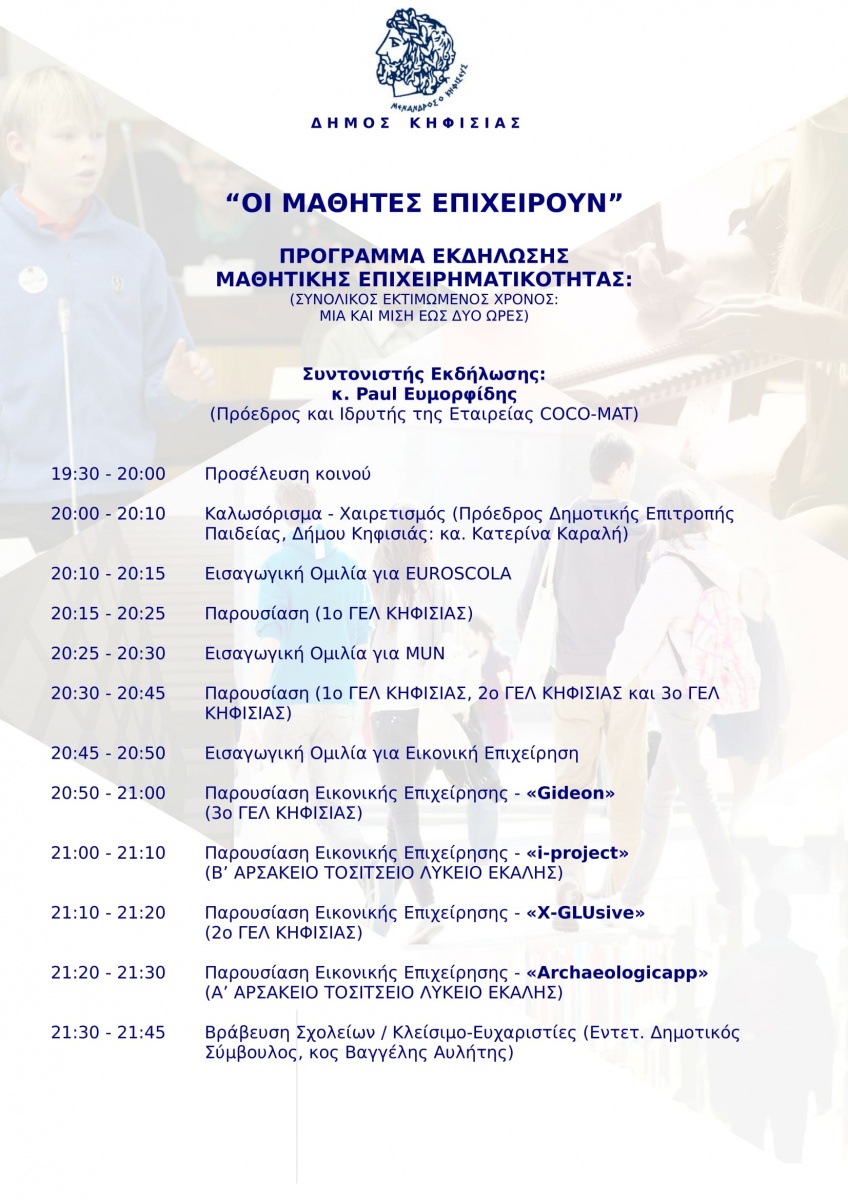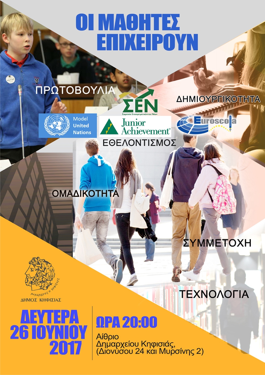 Οι μαθητές των σχολείων της Κηφισιάς επιχειρούν με καινοτομία , συμμετέχουν με υπευθυνότητα, εκπροσωπούν σοβαρά και κάνουν τη διαφορά , επικοινωνώντας ένα αισιόδοξο μήνυμα για το μέλλον που οι ίδιοι δημοιουργούν !!