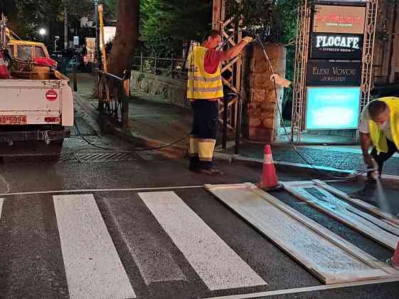 Διαγραμμίσεις πραγματοποιήθηκαν κατά τη διάρκεια της νύχτας, από το Δήμο Κηφισιάς στο πλαίσιο συντήρησης στις οδούς Κασσαβέτη, Κυριαζή, Λεβίδου και
