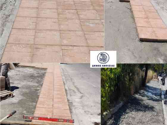 Συνεχίζονται οι κατασκευές πεζοδρομίων σε κοινόχρηστους χώρους της πόλης μας από τον Δήμο και συγκεκριμένα στην οδό Αντιγόνης πέριξ της παιδικής χα
