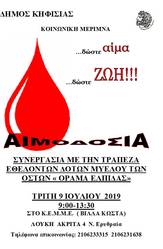 Την Τρίτη 9 Ιουλίου 2019 από 09:00 έως 13:30