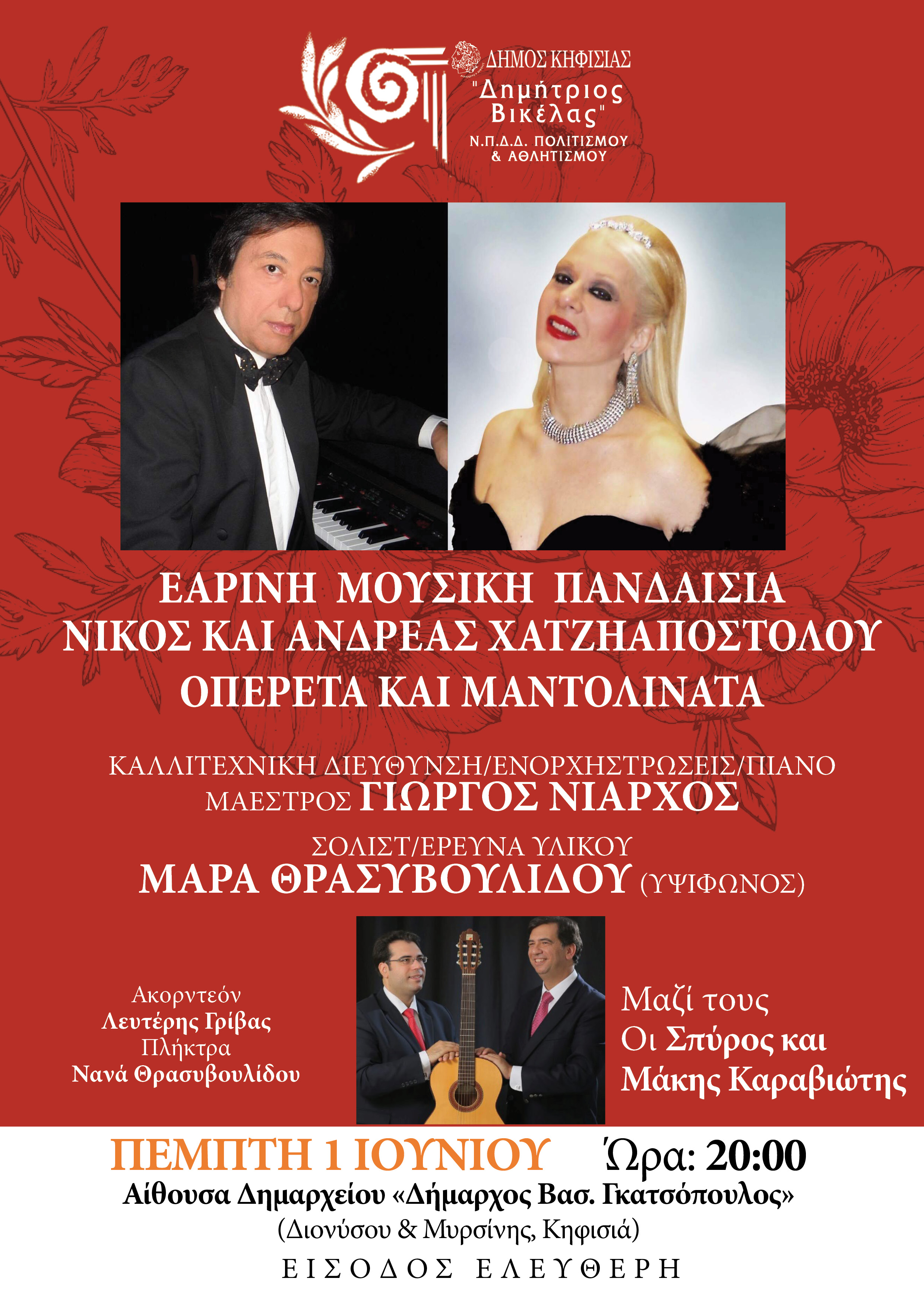 ΠΕΜΠΤΗ 1 ΙΟΥΝΙΟΥ Ώρα: 20:00 Αίθουσα Δημαρχείου «Δήμαρχος Βασ. Γκατσόπουλος» (Διονύσου & Μυρσίνης, Κηφισιά)