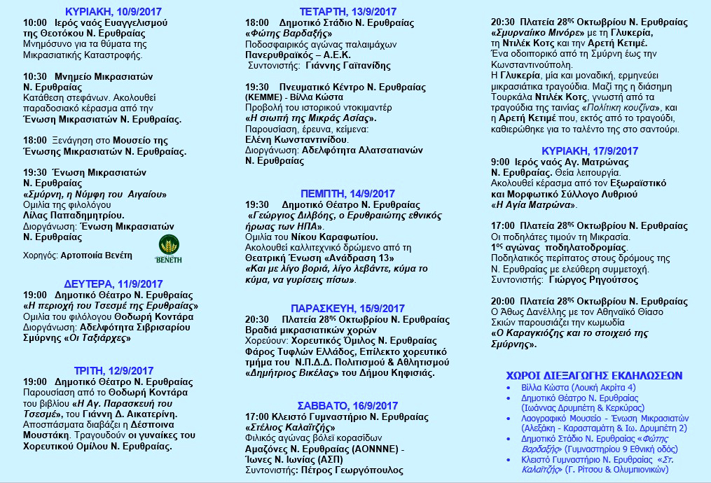 Διοργάνωση: Ένωση Μικρασιατών Ν. Ερυθραίας
