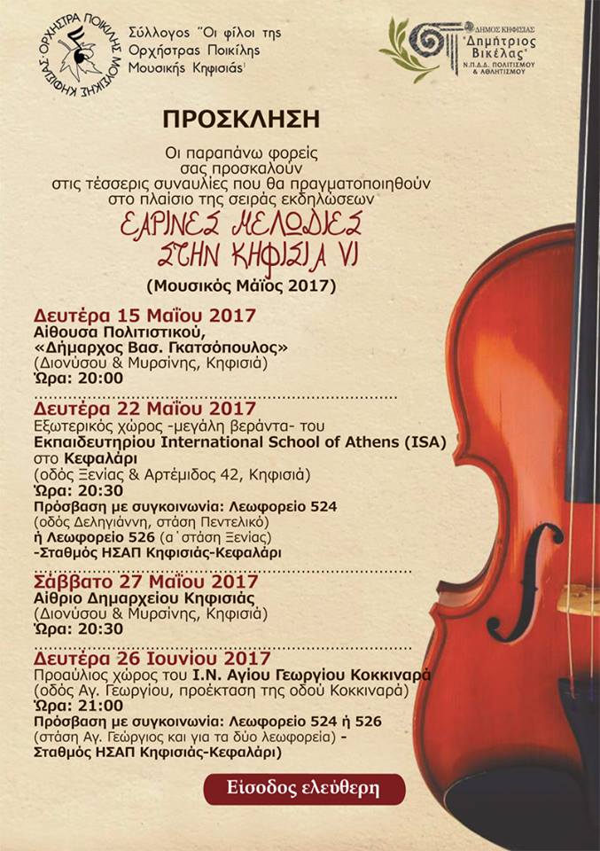 Σάββατο 27 Μαΐου, Αίθριο Δημαρχείου Κηφισιάς (Διονύσου & Μυρσίνης, Κηφισιά), ώρα 8.30 μ.μ.