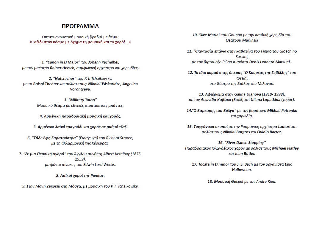 Ένα θεαματικό μουσικοχορευτικό ταξίδι στο χώρο της παράδοσης όλου του κόσμου...