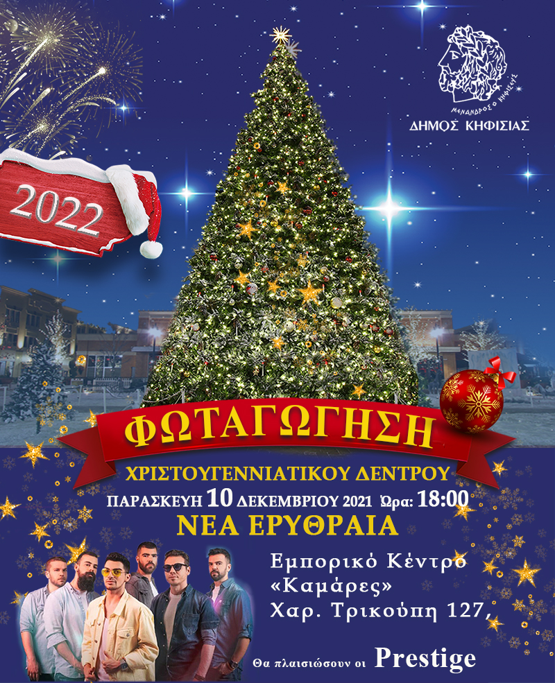 Εμπορικό Κέντρο Καμάρες (Χαριλάου Τρικούπη 127). Το άναμμα του δέντρου θα συνοδεύσει η ΝΕΑΝΙΚΗ POP & ROCK ΜΠΑΝΤΑ PRESTIGE THE BAND