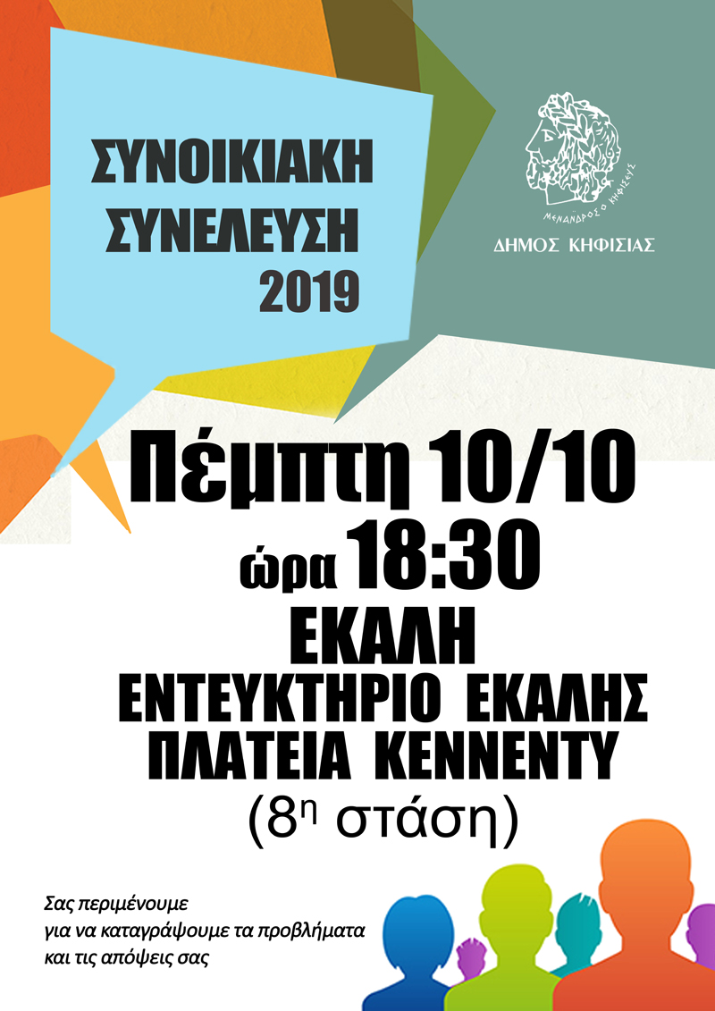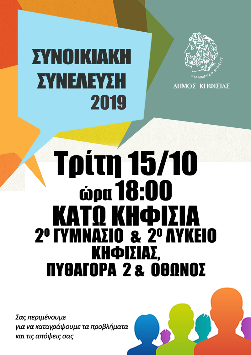 Τρίτη 15/10/2019 και ώρα 18.00 θα πραγματοποιηθεί Συνοικιακή Συνέλευση στην συνοικία της Κάτω Κηφισιάς