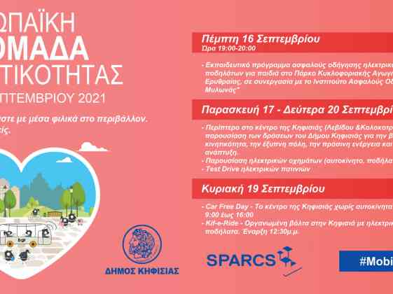 Δρόμοι χωρίς αυτοκίνητα, βόλτες με ηλεκτρικά πατίνια, περίπατοι στην πόλη της Κηφισιάς, εκπαιδευτικά προγράμματα για παιδιά και πολλές άλλες δράσει