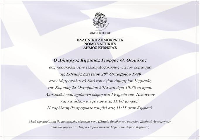 Ο ΔΗΜΟΣ ΚΗΦΙΣΙΑΣ προσφέρει στους πολίτες Ελληνικές σημαίες εν όψει της εθνικής επετείου της 28ης Οκτωβρίου 1940.