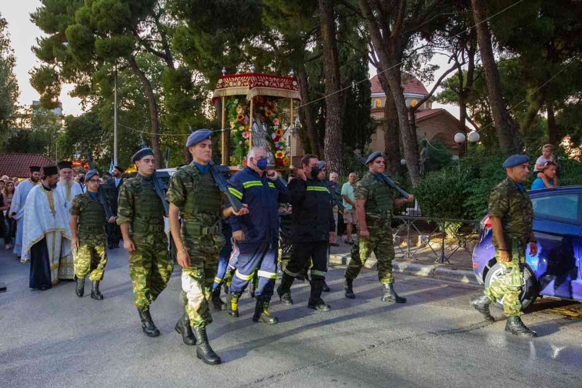 Ακολούθησε η λιτανεία της Ιερής Εικόνας του Σωτήρος μέσω των οδών Φιλαδελφέως, Χαριλάου Τρικούπη και Δηληγιάννη την οποία συνόδευαν αρκετοί ιερείς, τιμητικό άγημα, οι Φιλαρμονικές “Ανδρέας Κατεβαίνης” του Δήμου Κηφισιάς υπό τον μαέστρο Φίλιππο Χίου, της Ελληνικής Αστυνομίας, του Πυροσβεστικού Σώματος καθώς και πλήθος πιστών. Συμμετείχε με ευλάβεια στη λιτανεία της Ιεράς Εικόνας, η Ομάδα Εθελοντών Δασοπυροσβεστών Διασωστών.