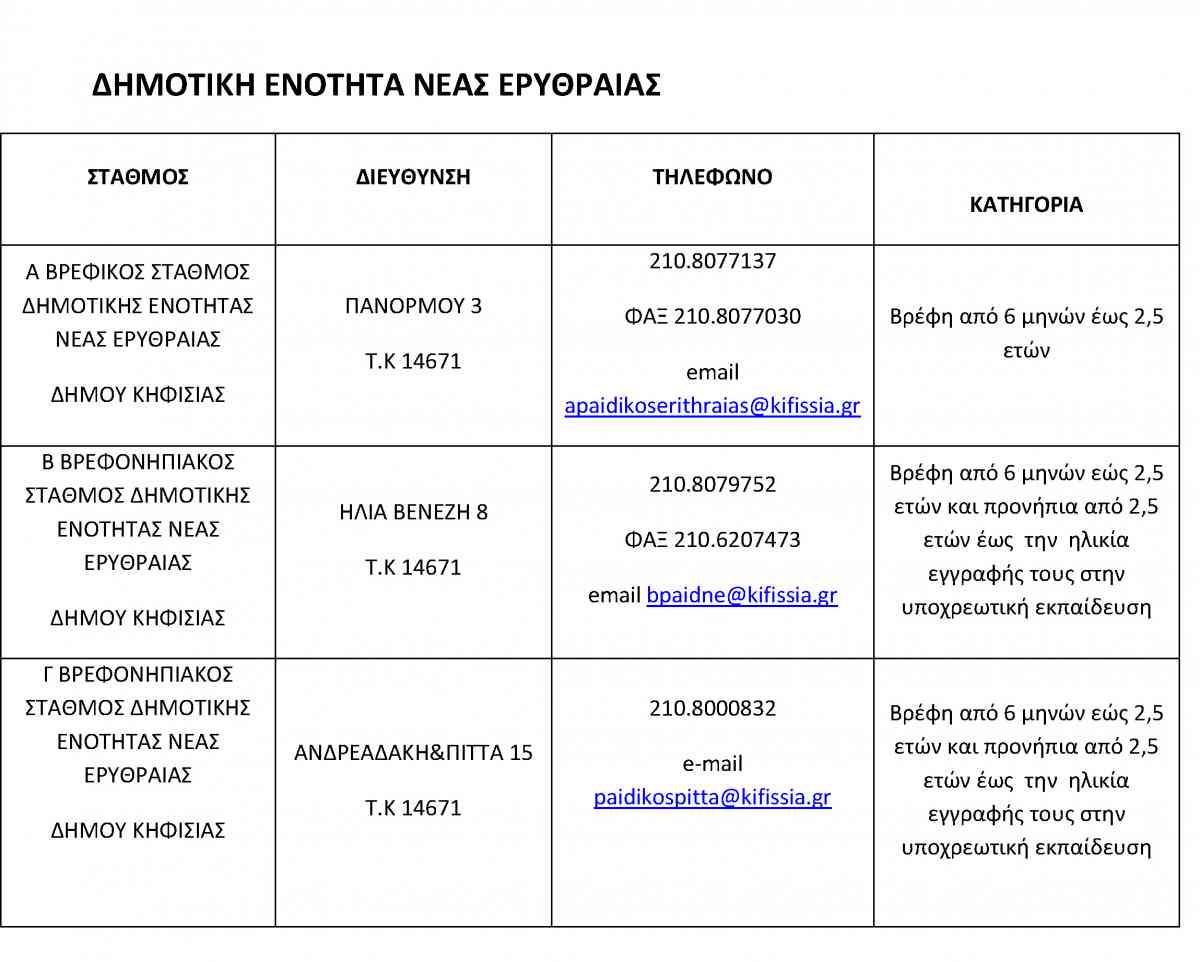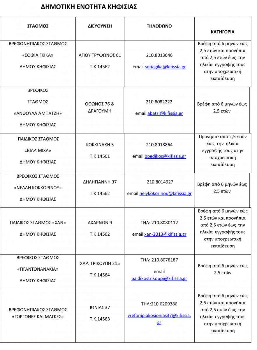 ΑΙΤΗΣΕΙΣ ΕΓΓΡΑΦΩΝ/ΕΠΑΝΕΓΓΡΑΦΩΝ ΓΙΑ ΤΟΥΣ ΒΡΕΦΙΚΟΥΣ-ΒΡΕΦΟΝΗΠΙΑΚΟΥΣ-ΠΑΙΔΙΚΟΥΣ ΣΤΑΘΜΟΥΣ ΤΟΥ ΔΗΜΟΥ ΚΗΦΙΣΙΑΣ ΓΙΑ ΤΟ ΕΤΟΣ 2023-2024