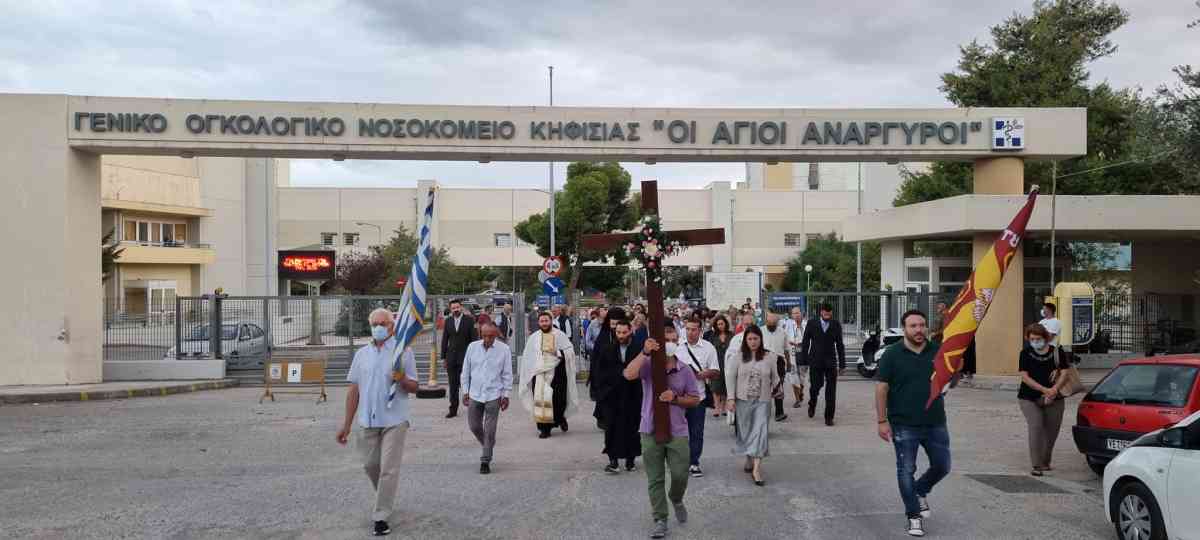 Ακολούθησε η λιτάνευση του Τιμίου Σταυρού, με την πομπή να εισέρχονται στο Γενικό Ογκολογικό Νοσοκομείο Κηφισιάς “ΑΓΙΟΙ ΑΝΑΡΓΥΡΟΙ”, όπου τελέστηκε δέηση για το νοσηλευτικό προσωπικό και τους ασθενείς. Στη λιτάνευση της Ιερής Εικόνας και ο Προϊστάμενος του Ι. Ν. Αγ. Ματρώνης Πρωτοπρεσβύτερος π. Γεώργιος.