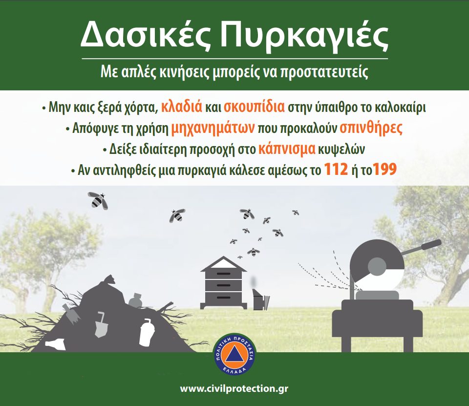 Δεδομένου επίσης των υψηλών θερμοκρασιών και της αντιπυρικής περιόδου που διανύουμε και σύμφωνα με τις οδηγίες του Υπουργείου Κλιματικής Κρίσης & Πολιτικής Προστασίας πρέπει να ακολουθούνται οι παρακάτω οδηγίες: