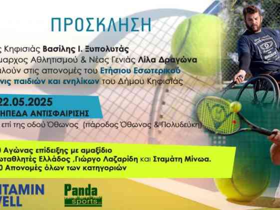 Πρόσκληση στις Απονομές του Ετήσιου Εσωτερικού Τουρνουά Τέννις του Δήμου