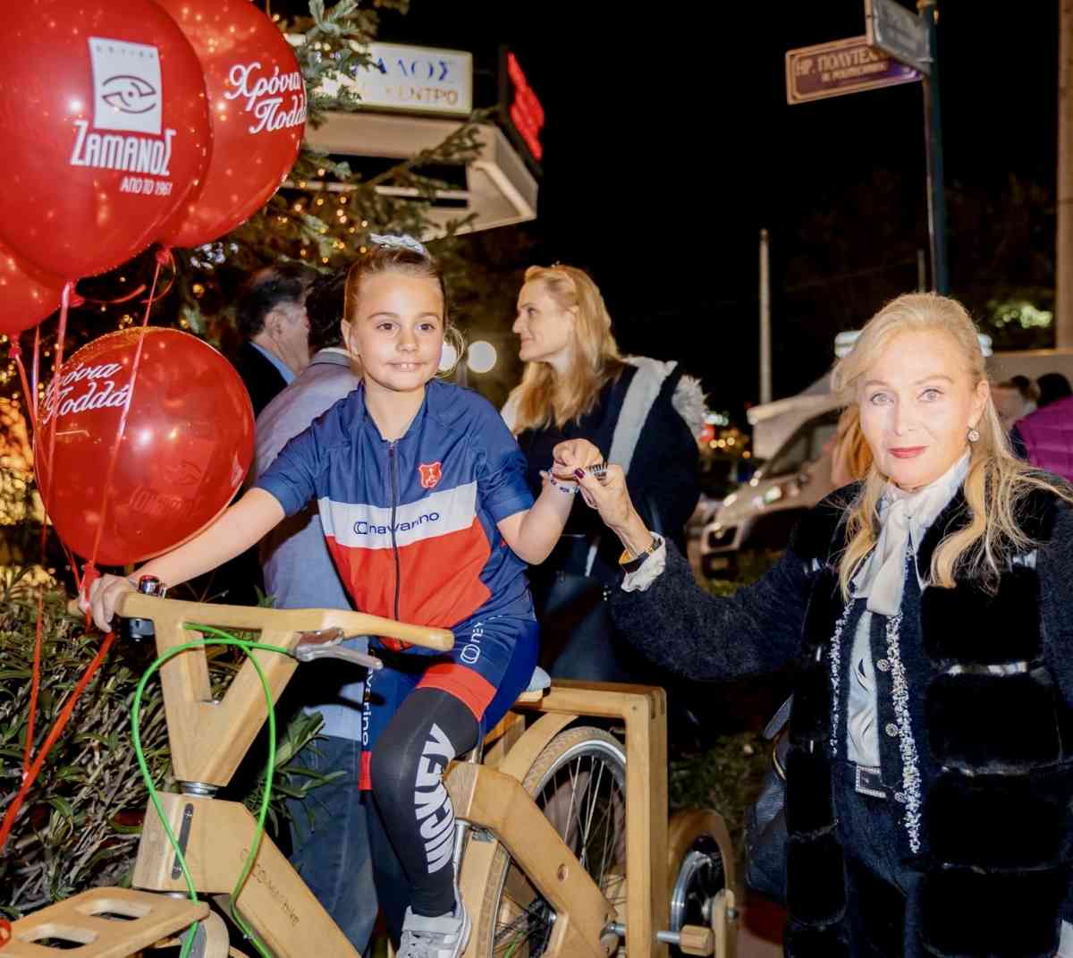 Η φωταγώγηση έγινε με οδηγούς στα πετάλια δύο εξέχουσες αθλήτριες του Δήμου μας. Την μόλις 9χρονη ποδηλάτρια του Πανερυθραϊκού Συλλόγου Μαριαλένα Οικονόμου και την Μάρβη Γιοβάνη, αρχηγό της γυναικείας Ομάδας Βόλεϊ του Ζ.Α.Ο.Ν. .