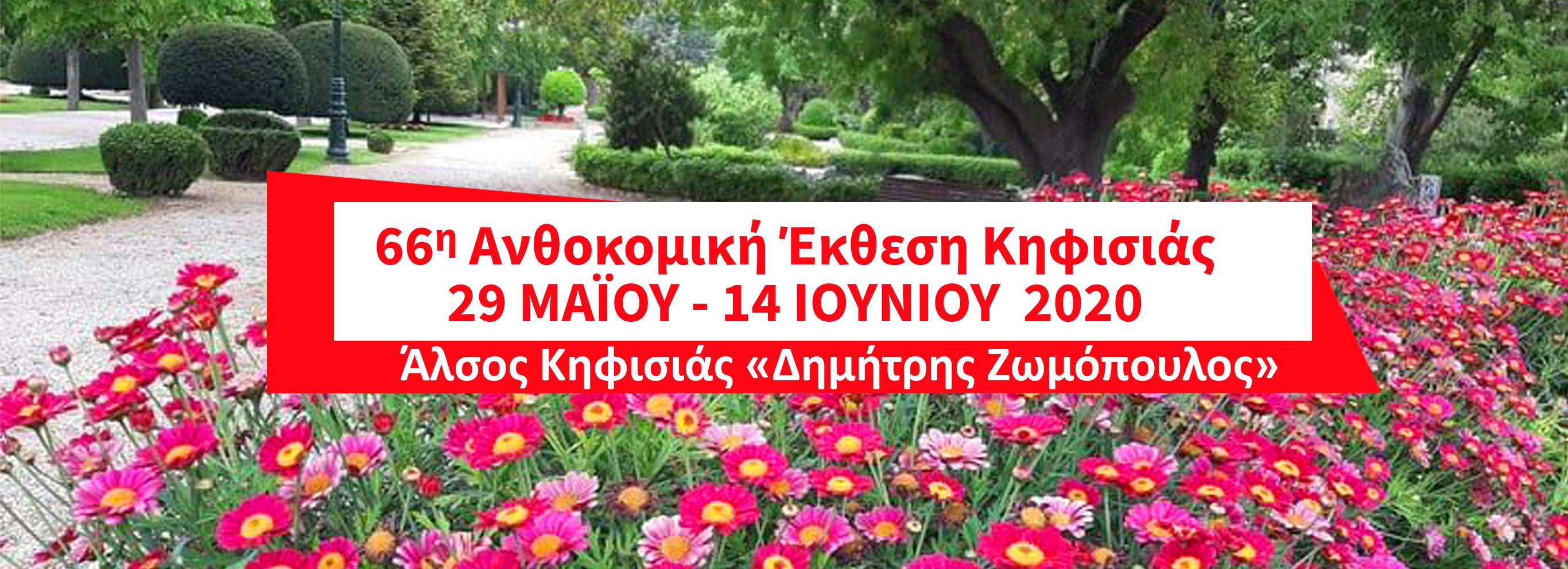Η 66η Ανθοκομική Έκθεση Κηφισιάς που ήταν προγραμματισμένη να γίνει από τις 23 Απριλίου μέχρι τις 10 Μαΐου 2020, όπως και όλες οι παράλληλες πολιτιστικές εκδηλώσεις αναβάλλονται λόγω της πανδημίας του κορονοϊού Covid-19 και της έκτακτης κατάστασης που επικρατεί στη χώρα μας.