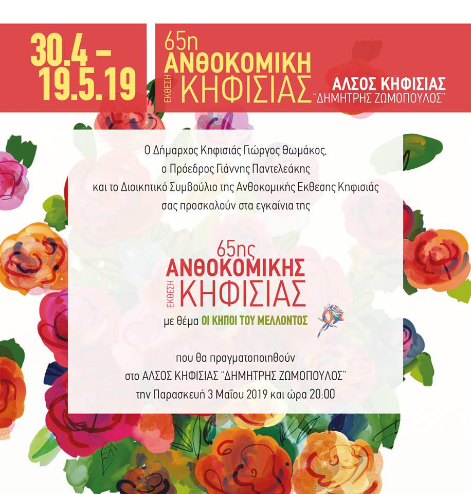 Η πιο αναγνωρίσιμη και μεγάλη έκθεση ανθέων και φυτών στην Ελλάδα γιορτάζει φέτος 65 χρόνια λειτουργίας και ανοίγει τις πόρτες της στις 30 Απριλίου 2019 στο Άλσος Κηφισιάς ‘Δημήτρης Ζωμόπουλος’
